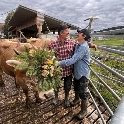 Als „Teenies“ dürfen sie dann vom alten Kuhstall wieder nach hinten in den Neubau ziehen. Dort hat es einige Plätze für grosse Rinder, wo sie den Stall und die Herde kennenlernen können. Vor dem Abkalben werden diese Rinder dann in die Kuhherde integriert. Somit schliesst sich der Kreislauf.